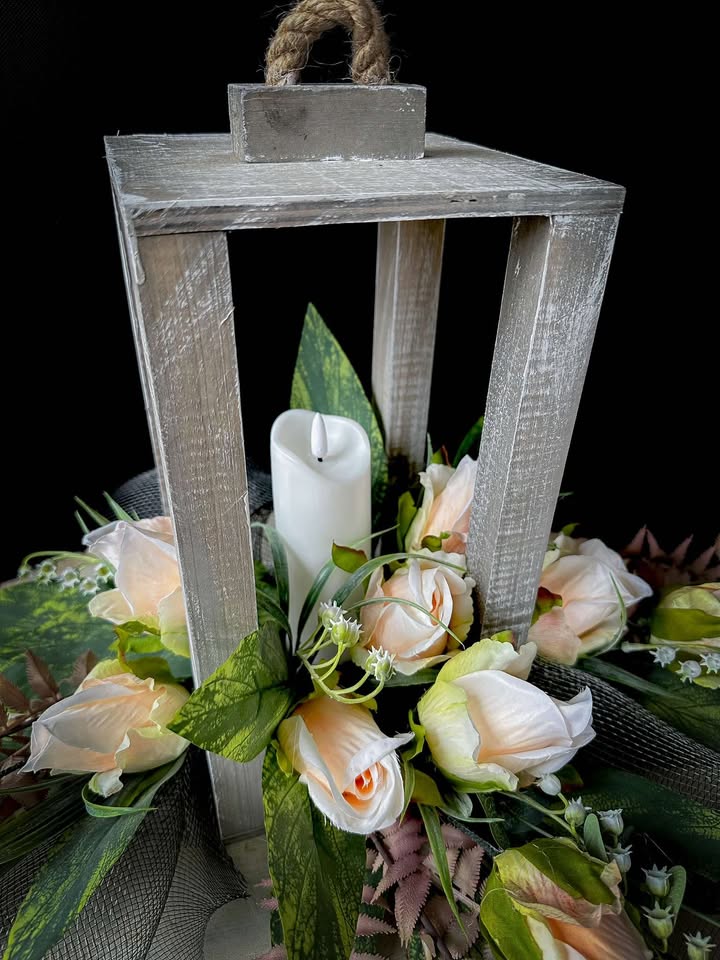 Drewniany lampion z kwiatami to elegancka dekoracja, która idealnie sprawdzi się jako stroik na grób. Wykonany z naturalnego drewna, lampion posiada subtelny, klasyczny wygląd, który w połączeniu z kwiatami tworzy harmonijną całość. Kwiaty, które zdobią lampion, są kwiatami  wysokiej jakości – sztucznymi , co pozwala na długotrwałe utrzymanie dekoracji w doskonałym stanie. W środku jest świeca LED na dwie baterie AA (nie są w zestawie).