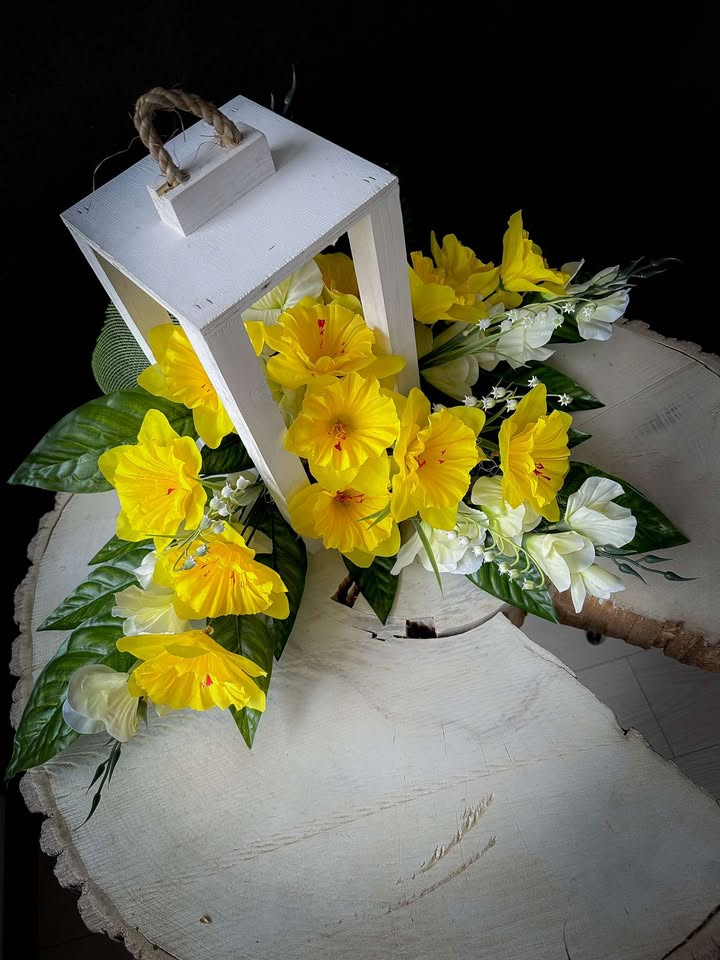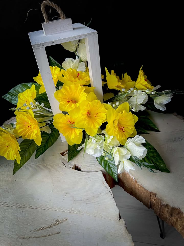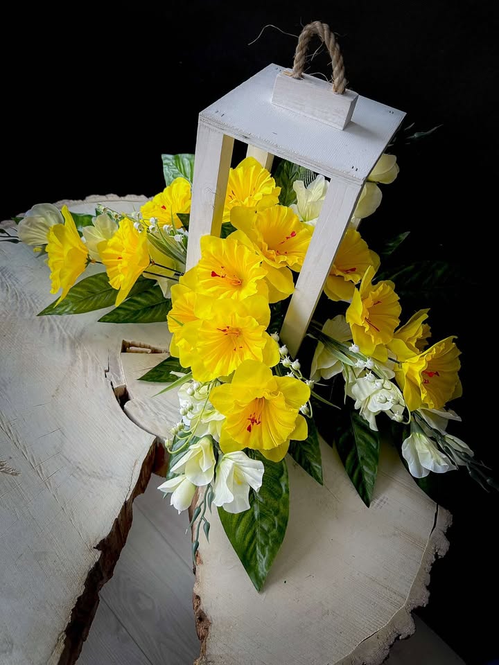 Drewniany lampion z kwiatami to elegancka dekoracja, która idealnie sprawdzi się jako stroik na grób. Wykonany z naturalnego drewna, lampion posiada subtelny, klasyczny wygląd, który w połączeniu z kwiatami tworzy harmonijną całość. Kwiaty, które zdobią lampion, są kwiatami wysokiej jakości – sztucznymi , co pozwala na długotrwałe utrzymanie dekoracji w doskonałym stanie.