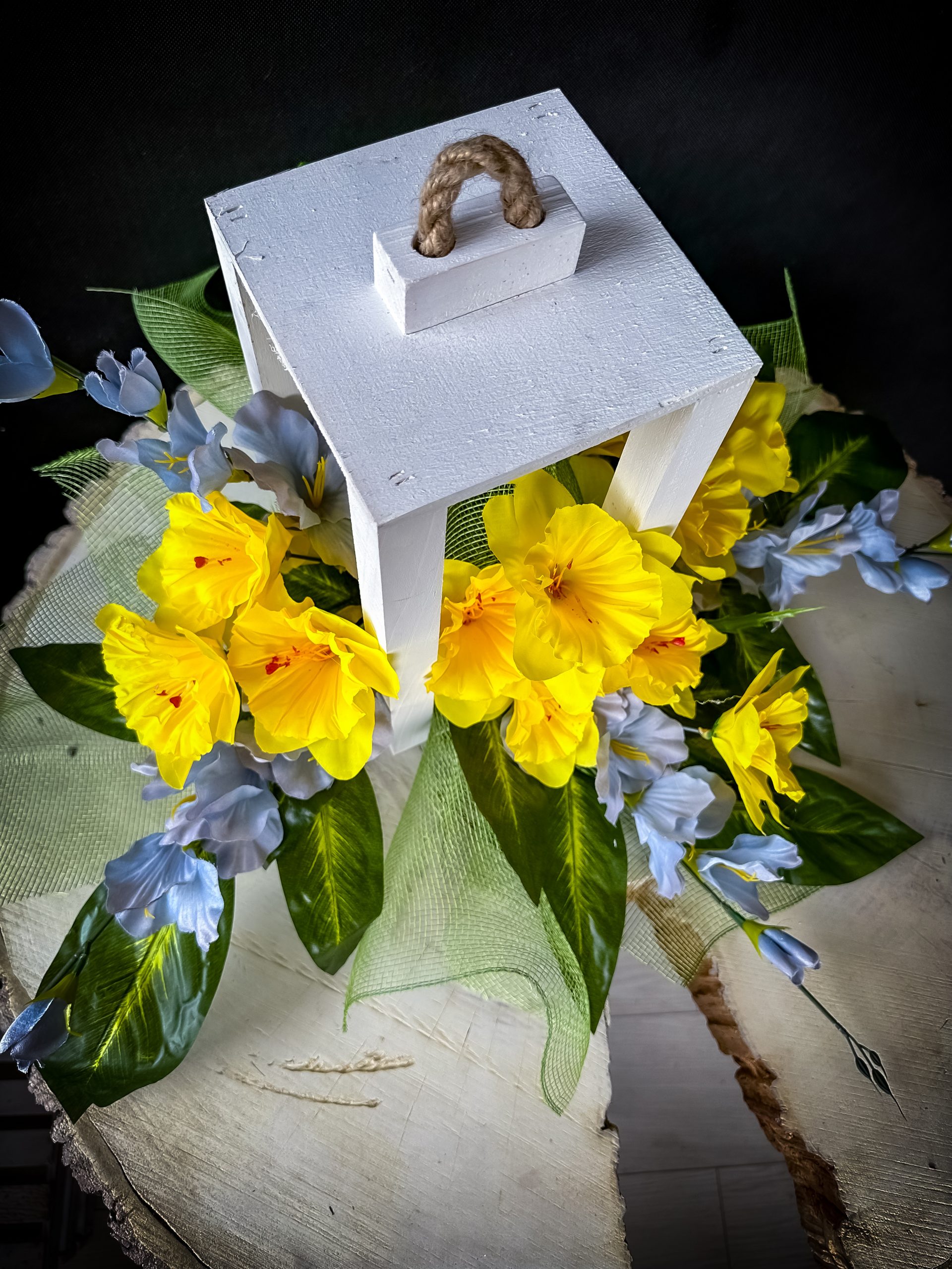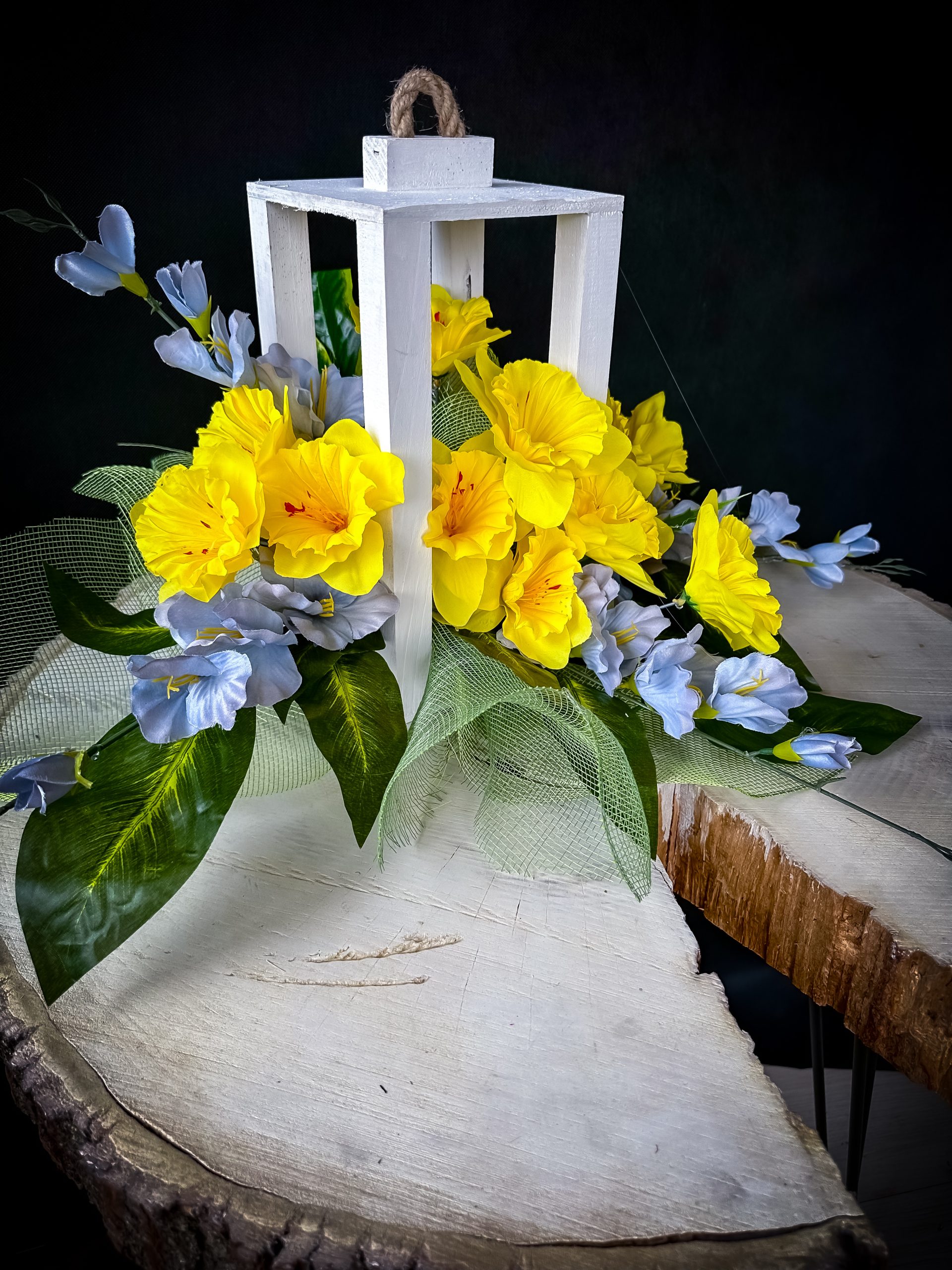 Drewniany lampion z kwiatami to elegancka dekoracja, która idealnie sprawdzi się jako stroik na grób. Wykonany z naturalnego drewna, lampion posiada subtelny, klasyczny wygląd, który w połączeniu z kwiatami tworzy harmonijną całość. Kwiaty, które zdobią lampion, są kwiatami  wysokiej jakości – sztucznymi , co pozwala na długotrwałe utrzymanie dekoracji w doskonałym stanie.